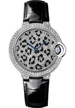 Cartier Ballon Bleu de Cartier Panther Spots Watch - 33 mm White Gold Diamond Case - Diamond Dial - Black Alligator Strap - HPI01064