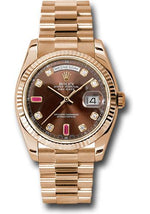 Rolex Everose Gold Day-Date 36 Watch - Fluted Bezel - Chocolate Diamond And Ruby Dial - President Bracelet - 118235 chodrp