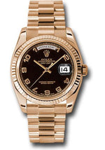 Rolex Pink Gold Day-Date 36 Watch - Fluted Bezel - Black Arabic Dial - President Bracelet - 118235 bkap