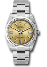 36mm stainless steel case, screw-down crown with twinlock double waterproofness system, domed bezel, scratch-resistant sapphire crystal, white grape dial, index hour markers, Rolex calibre 3130 automatic movement, stainless steel Oyster bracelet with flat three-piece links, folding Oysterclasp buckle. Waterproof to 100 meters.