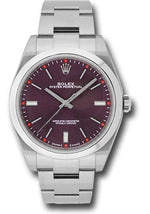 Rolex Steel Oyster Perpetual 39 Watch - Domed Bezel - Red Grape Index Dial - 114300 rgio
