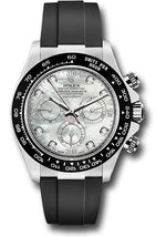 Rolex White Gold Cosmograph Daytona 40 Watch - Mother-of-Pearl Diamond Dial - Black Oysterflex Strap - 116519LN mdof