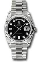 Rolex White Gold Day-Date 36 Watch - Fluted Bezel - Black Diamond Dial - President Bracelet - 118239 bkdp