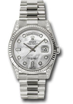 Rolex White Gold Day-Date 36 Watch - Fluted Bezel - Mother-Of-Pearl Diamond Dial - President Bracelet - 118339 mdp
