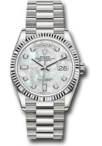 Rolex White Gold Day-Date 36 Watch - Fluted Bezel - Mother-of-Pearl Diamond Dial - President Bracelet - 128239 mdp