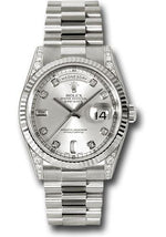 Rolex White Gold Day-Date 36 Watch - Fluted Bezel - Silver Diamond Dial - President Bracelet - 118339 sdp