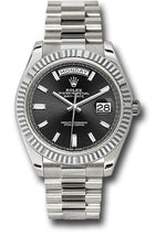 Rolex White Gold Day-Date 40 Watch - Fluted Bezel - Black Baguette Diamond Dial - President Bracelet - 228239 bkbdp