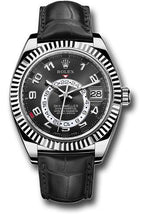 Rolex White Gold Sky-Dweller Watch - Black Arabic Dial - Black Leather Strap - 326139 bk