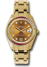 Rolex Yellow Gold Datejust Pearlmaster 39 Watch - 48 Orange To Yellow Gradient Baguette-Cut Sapphires Bezel - Cognac Diamond Dial - 86348SAJOR