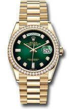 Rolex Yellow Gold Day-Date 36 Watch - Diamond Bezel - Green Ombre´ Diamond Dial - President Bracelet - 128348RBR godp