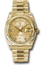 Rolex Yellow Gold Day-Date 36 Watch - Fluted Bezel - Champagne Diamond Dial - President Bracelet - 118238 chdp