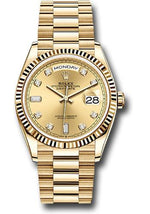 Rolex Yellow Gold Day-Date 36 Watch - Fluted Bezel - Champagne Diamond Dial - President Bracelet - 128238 chdp