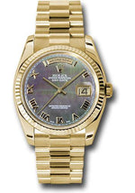 Rolex Yellow Gold Day-Date 36 Watch - Fluted Bezel - Dark Mother-Of-Pearl Roman Dial - President Bracelet - 118238 dkmrp