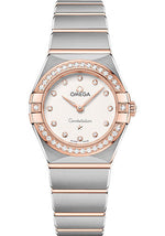Omega Constellation Manhattan Quartz Watch - 25 mm Steel And Sedna Gold Case - Diamond-Paved Bezel - Crystal White Silvery Diamond Dial - 131.25.25.60.52.001