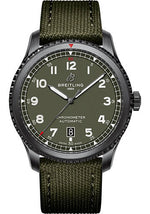 Breitling Aviator 8 Automatic 41 Black Steel Curtiss Warhawk Watch - DLC-Coated Stainless Steel - Green Dial - Khaki Green Calfskin Leather Strap - Folding Buckle - M173152A1L1X2