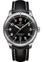 Breitling Aviator 8 Automatic 41 Watch - Stainless Steel - Black Dial - Black Calfskin Leather Strap - Tang Buckle - A17315101B1X1
