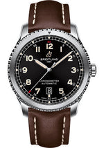 Breitling Aviator 8 Automatic 41 Watch - Stainless Steel - Black Dial - Brown Calfskin Leather Strap - Tang Buckle - A17315101B1X3