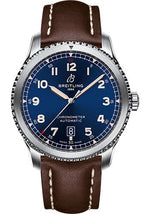 Breitling Aviator 8 Automatic 41 Watch - Stainless Steel - Blue Dial - Brown Calfskin Leather Strap - Tang Buckle - A17315101C1X1