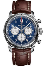 Breitling Aviator 8 B01 Chronograph 43 Watch - Stainless Steel - Blue Dial - Brown Alligator Leather Strap - Folding Buckle - AB0119131C1P4