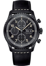 Breitling Aviator 8 Chronograph 43 Watch - Black Steel Case - Black Dial - Black Leather Strap - M13314101B1X1