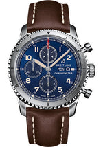 Breitling Aviator 8 Chronograph 43 Watch - Stainless Steel - Blue Dial - Brown Calfskin Leather Strap - Tang Buckle - A13316101C1X2