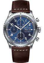 Breitling Aviator 8 Chronograph 43 Watch - Steel Case - Blue Dial - Brown Leather Strap - A13314101C1X2