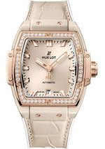 Hublot Spirit of Big Bang Beige Ceramic King Gold Diamonds Watch - 39 mm - Beige Dial - White Rubber and Beige Alligator Strap-665.CZ.898B.LR.1204
