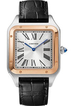 Cartier Santos-Dumont Watch - 46.6 mm x 33.9 mm Steel Case - Pink Gold Bezel - Silver Dial - Black Leather Strap - W2SA0017