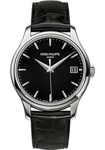 39 mm 18K white gold case, sapphire-crystal back protected by a hinged dust cover, black lacquered dial with gold applied hour markers, caliber 324 S C self-winding movement with date in an aperture and center sweep second hand, approximately 35-45 hours of power reserve, shiny black alligator strap with square scales, prong buckle. Water resistant to 30 m.