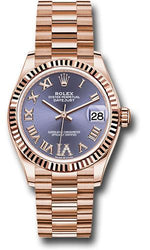 Rolex Everose Gold Datejust 31 Watch - Fluted Bezel - Aubergine Diamond Six Dial - President Bracelet - 278275 aubdr6p