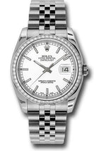 Rolex Steel and White Gold Datejust 36 Watch - 52 Diamond Bezel - White Index Dial - Jubilee Bracelet - 116244 wij