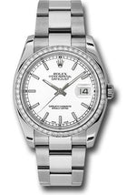 Rolex Steel and White Gold Datejust 36 Watch - 52 Diamond Bezel - White Index Dial - Oyster Bracelet - 116244 wio