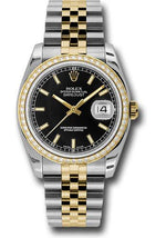 Rolex Steel and Yellow Gold Rolesor Datejust 36 Watch - 52 Brilliant-Cut Diamond Bezel - Black Index Dial - Jubilee Bracelet - 116243 bkij