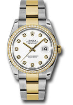 Rolex Steel and Yellow Gold Rolesor Datejust 36 Watch - 52 Diamond Bezel - White Diamond Dial - Oyster Bracelet - 116243 wdo