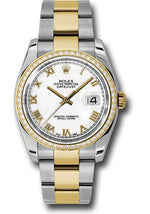 Rolex Steel and Yellow Gold Rolesor Datejust 36 Watch - 52 Diamond Bezel - White Roman Dial - Oyster Bracelet - 116243 wro