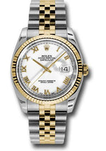 Rolex Steel and Yellow Gold Rolesor Datejust 36 Watch - Fluted Bezel - White Roman Dial - Jubilee Bracelet - 116233 wrj