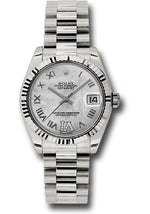 Rolex White Gold Datejust 31 Watch - Fluted Bezel - Mother-Of-Pearl Diamond Roman Vi Roman Dial - President Bracelet - 178279 mdrp