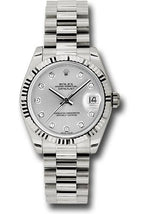 Rolex White Gold Datejust 31 Watch - Fluted Bezel - Silver Diamond Dial - President Bracelet - 178279 sdp
