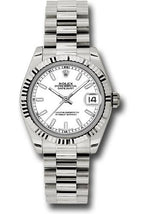 Rolex White Gold Datejust 31 Watch - Fluted Bezel - White Index Dial - President Bracelet - 178279 wip
