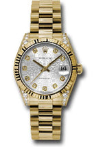 Rolex Yellow Gold Datejust 31 Watch - Fluted Bezel - Silver Jubilee Diamond Dial - President Bracelet - 178238 sjdp