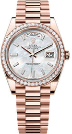 Rolex Day-Date 40 40mm White MOP Diamond Set Dial Diamond Set Bezel President Bracelet - 228345RBR | 2024 Model