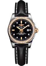 Breitling Galactic 29 Sleek Watch - Steel & rose Gold, gem-set bezel - Trophy Black Diamond Dial - Black Leather Strap - Tang Buckle - C7234853/BE86/477X/A12BA.1