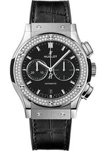 Hublot Classic Fusion Chronograph Titanium Diamonds Watch - 42 mm - Black Dial - Black Rubber and Leather Strap-541.NX.1171.LR.1104