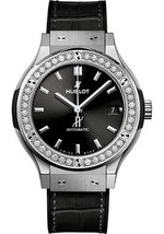 Hublot Classic Fusion Titanium Diamonds Watch - 38 mm - Black Dial - Black Rubber and Leather Strap-565.NX.1470.LR.1204