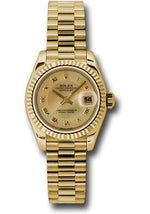 Rolex Yellow Gold Lady-Datejust 26 Watch - Fluted Bezel - Champagne Decorated Mother-Of-Pearl Roman Dial - President Bracelet - 179178 chmdrp