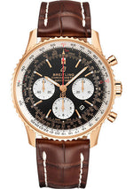 Breitling Navitimer B01 Chronograph 43 Watch - 18k Red Gold - Black Dial - Brown Croco Strap - Folding Buckle - RB0121211B1P2