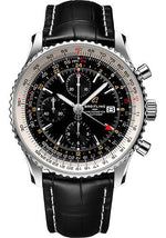 Breitling Navitimer Chronograph GMT 46 Watch - Steel - Black Dial - Black Croco Strap - Tang Buckle - A24322121B2P1
