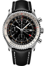 Breitling Navitimer Chronograph GMT 46 Watch - Steel - Black Dial - Black Leather Strap - Tang Buckle - A24322121B2X1