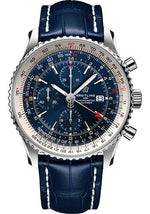 Breitling Navitimer Chronograph GMT 46 Watch - Steel - Blue Dial - Blue Alligator Strap - Folding Buckle - A24322121C2P2