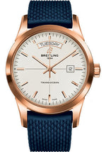 Breitling Transocean Day & Date Watch - 18k Red Gold - Mercury Silver Dial - Blue Rubber Aero Classic Strap - R4531012/G752/281S/R20D.3